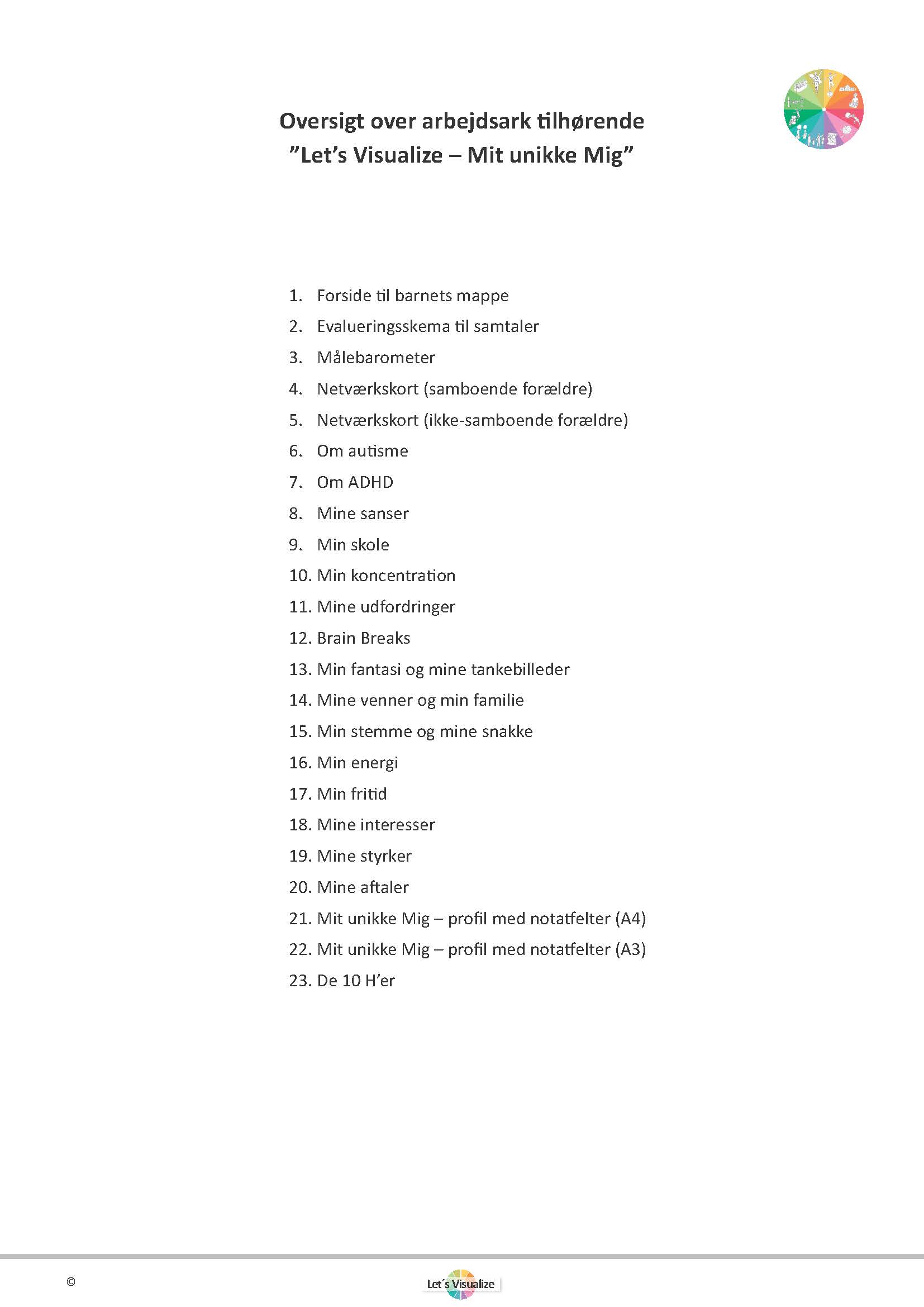 Let’s Visualize – Min Autisme er et konkret og visuelt understøttet samtalemateriale, hvis hovedformål er at fremme selvforståelsen hos unge og voksne med autisme, for derved at skabe grobund for at opnå bedre livskvalitet.