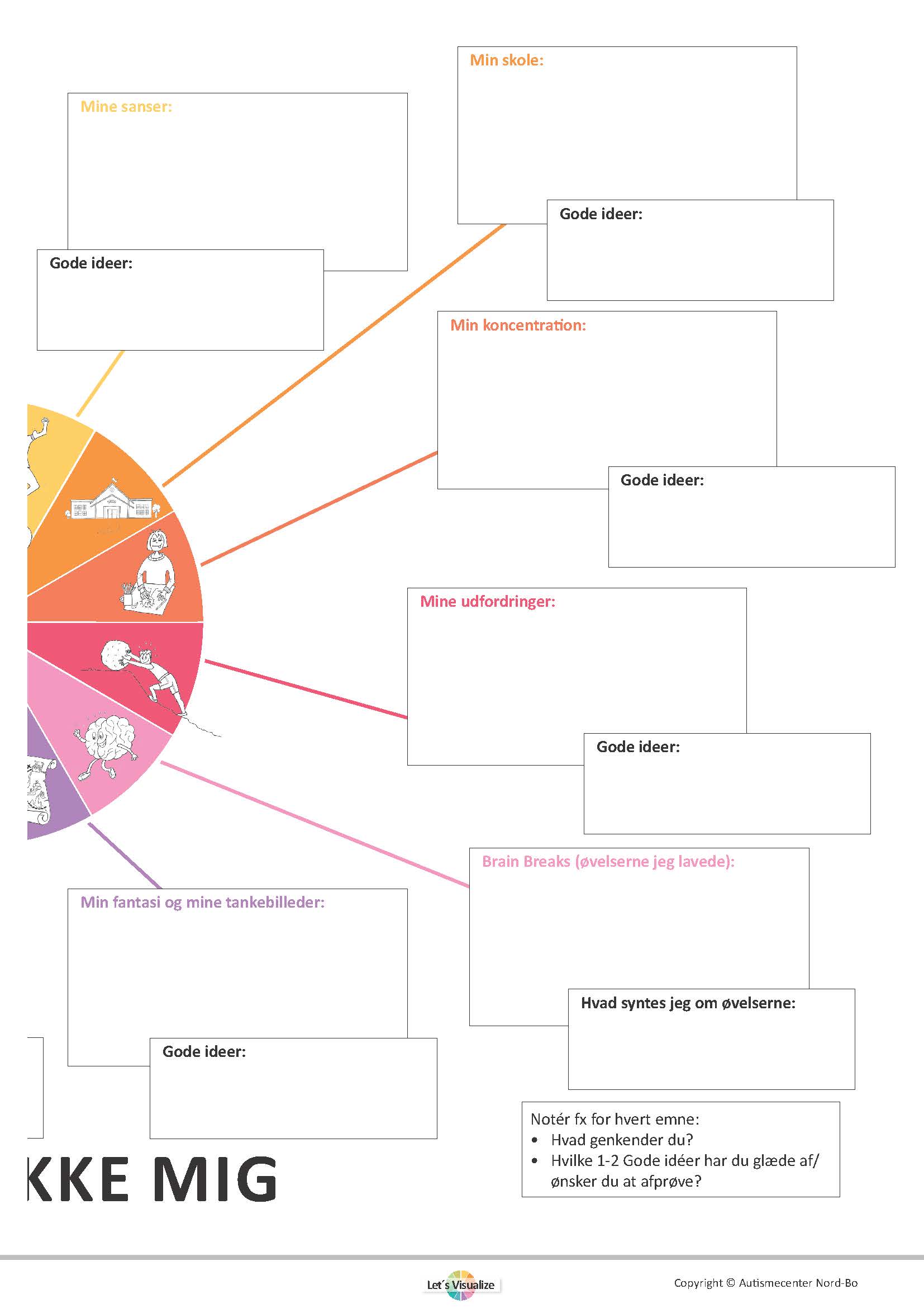 - alt sammen betydningsfulde oplysninger, som personen med autisme kan dele med sit netværk (fx pårørende og fagpersoner), og som kan tages med videre i livet.